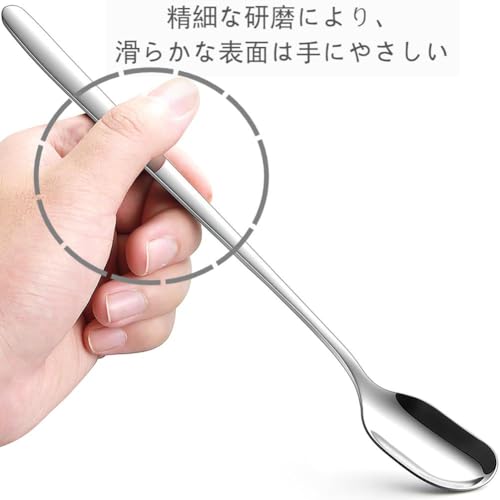 【多用途パフェスプーン】長さがあるハンドルので普段にアイス,コーヒー、ジュース、カクテルなどを飲むときに、攪拌スプーンなどとして使用することができます。マグカップに入れた紅茶を混ぜる時にも便利 です、また牛乳パックから取り出すときも便利である。バー、ホーム、レストラン、コーヒー屋さん、飲料店、パーティー用に最適の長いスプーン。現代的、機能的、快適を求めるのシンプルのスプーン。