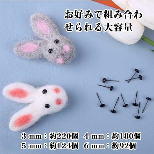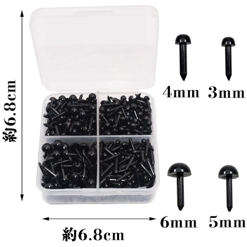 1.セット内容:ぬいぐるみメガネ3 mm/220個、4 mm/180個、5 mm/124個6 mm/92個、合計約616個入り。