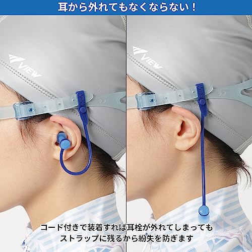 [ビュー] スイミング用 耳栓 コード付き 水泳 フィットネス プール シリコーン製 VA1201 BL