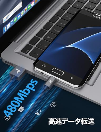 【高速充電とデータ転送】2.4A充電ケーブルは、標準タイプのケーブルより高速に充電し、USB 2.0経由で480Mbitsまでデータ転送可能。