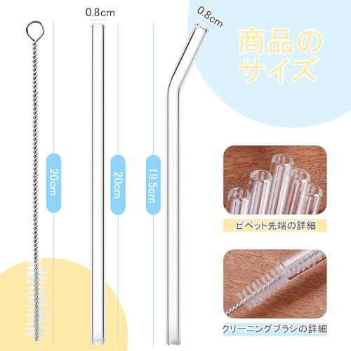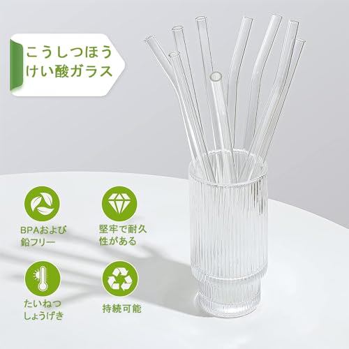KALOLINNA ガラスストロー ガラス製 耐熱 再利用可能 安全無毒 環境に優しい 洗浄ブラシ付き 4本セット