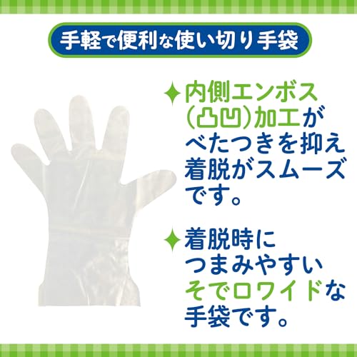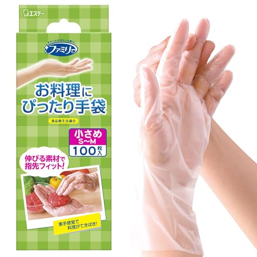 ファミリー お料理にぴったり 手袋 小さめ S~Mサイズ 半透明 100枚 内エンボス(凸凹)加工 左右両用タイプ 食品衛生法適合 調理 掃除 使い捨て