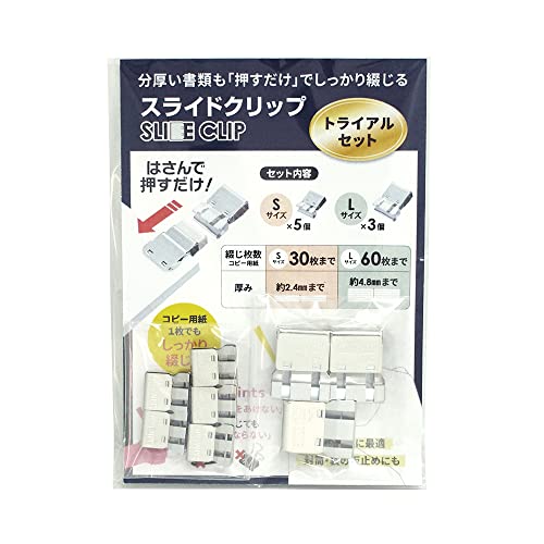【TOHKIN】スライドクリップ トライアルセット (金属Sサイズ5個・金属Lサイズ3個セット)SC-S5-L3 書類整理