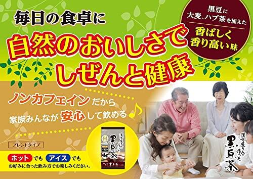 古くから健康食材として親しまれている黒豆を使ったノンカフェインの健康茶です。香ばしく煎った黒豆に大麦、ハブ茶をブレンドすることで、おいしく香り高い味に仕上げました。いつもの食卓に、ご家族皆様の健康な毎日の為に是非ご利用ください。