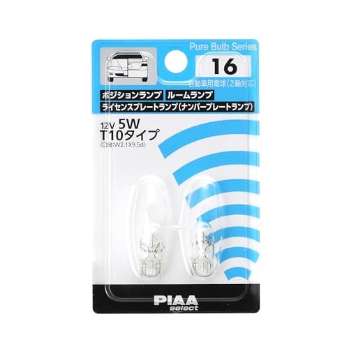 PIAA(ピア) 車用 ランプ&バルブ ポジション/ルーム/ライセンスプレート用 ハロゲンバルブ T10(W2.1x9.5d) クリア 2個入 12V 5W HR16