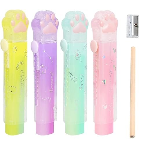 消しゴム 小学生 よく消える スかわいい 動物 消しゴム セット ティック消しゴム 消しゴム ペン 猫 可愛い 文房具 キラキラ カラフル 消しゴム4色+鉛筆+鉛筆削り 6個セット (キラキラ カラフル 4色セット)