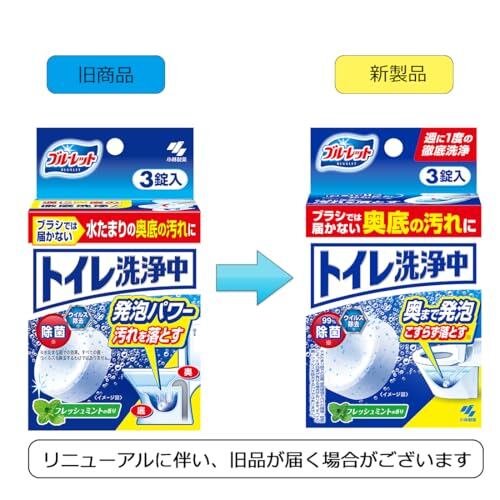 トイレ洗浄中 水洗トイレの便器の底(水溜り部分)洗浄剤 フレッシュミントの香り 3錠 小林製薬 トイレ掃除