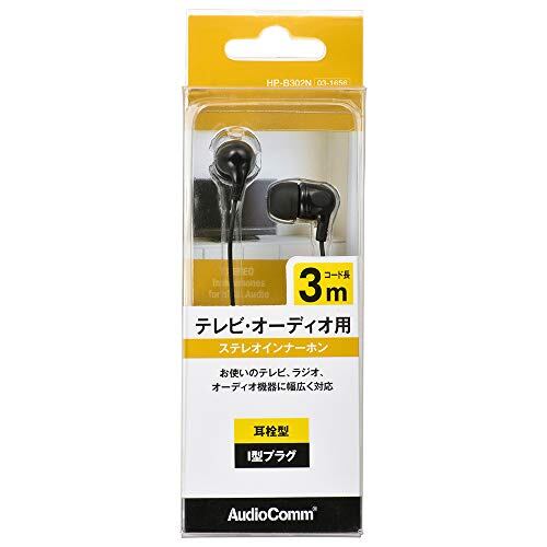 オーム電機 AudioComm テレビ・オーディオ用ステレオイヤホン 耳栓型 3m HP-B302N 03-1656 OHM