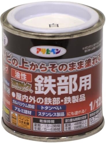 アサヒペン 塗料 ペンキ 油性高耐久鉄部用 1/12L 白 油性 サビの上からそのまま塗れる ツヤあり 1回塗り 高密着性 耐候性 日本製