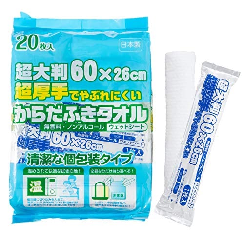 【 日本製 】超大判 でやぶれにくい 個包装 の からだふき ウエットシート タオルです。