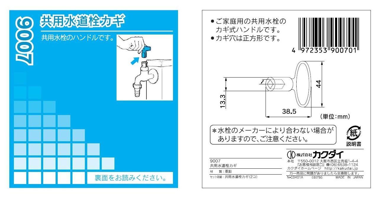 カクダイ 共用水道栓カギ 2個入 9007