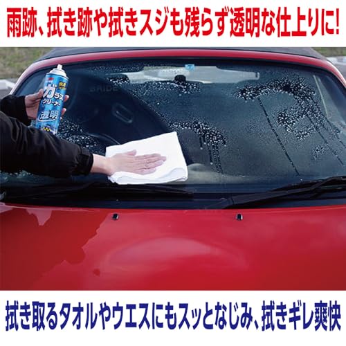 ガラス面にはホコリや雨跡などの汚れのほか、拭き跡や白っぽい拭きスジも残らず、「透明」な仕上り。