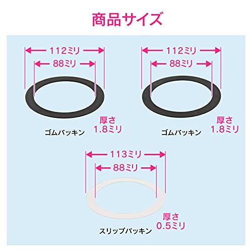 ゴムパッキンサイズ:外径112mm×内径88mm×厚さ1.8mm、スリップパッキンサイズ:外径113mm×内径88mm×厚さ0.5mm