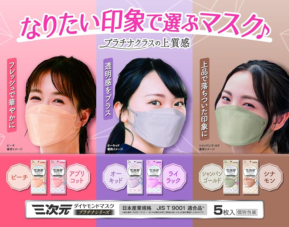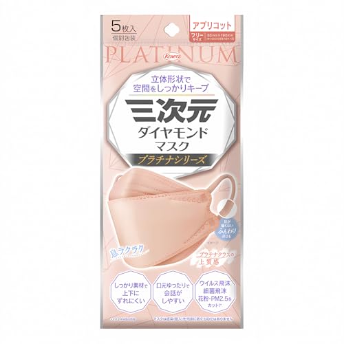三次元ダイヤモンドマスク プラチナシリーズ フリーサイズ アプリコット 5枚