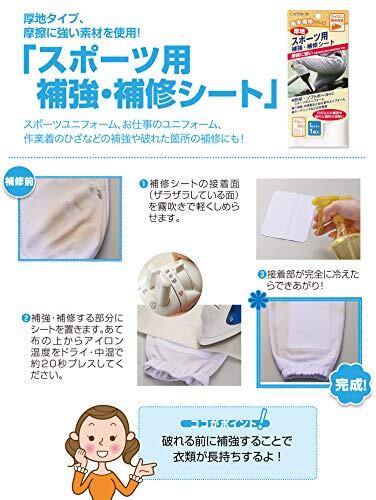 アイロンで簡単に接着でき、摩擦に強い厚地のスポーツ用補強・補修シートです。野球、ソフトボールなどのスポーツユニフォーム、介護服、作業服などのお仕事ユニフォーム、ガーデニングなどの作業着の補強や、破れた箇所の補修に使用できます。