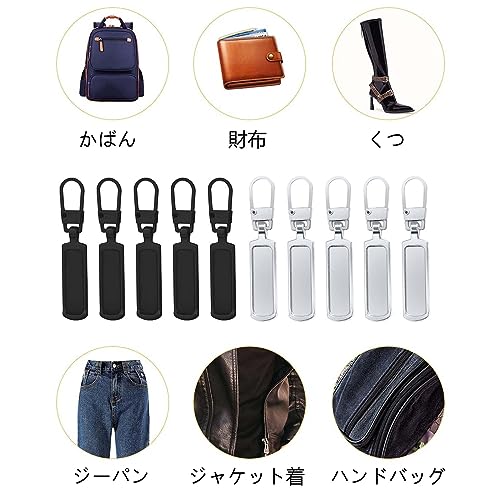 ファスナー 引き手 ジッパー金属製 交換用(10個セット) 修理部品 DIY手芸手作り裁縫 簡単着脱 スーツケース/バッグ/衣類/ブーツ 自分で修理