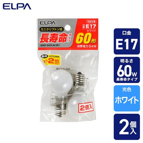 エルパ(ELPA) 長寿命ミニクリプトン球 電球 照明 間接照明 E17 54W ホワイト 2個入 GKP-542LH(W)