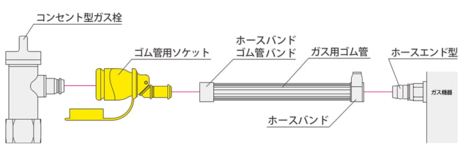 コンセント型ガス栓とゴム管(ガスホース)を接続する時に使うプラグです。ゴム管(ガスホース)はコンセント型ガス栓には直接接続できません。ガス栓の差込口がコンセント型かホースエンド型かを事前に確認してください。