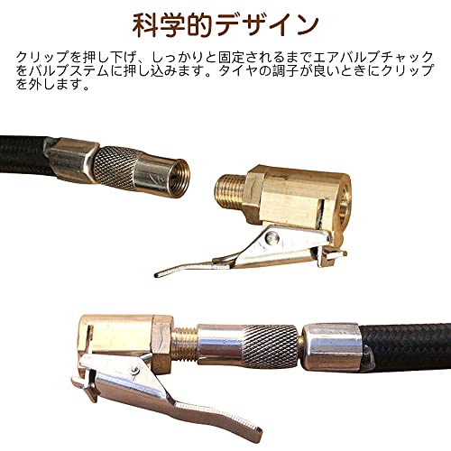 【優れたデザイン】車のエアチャッククリップロック、エアポンプと一緒に膨らませる高速バルブコネクタに固定する 車 タイヤバルブがかみ合っていなくても、空気の流れはチャックを自由に通過することができます。