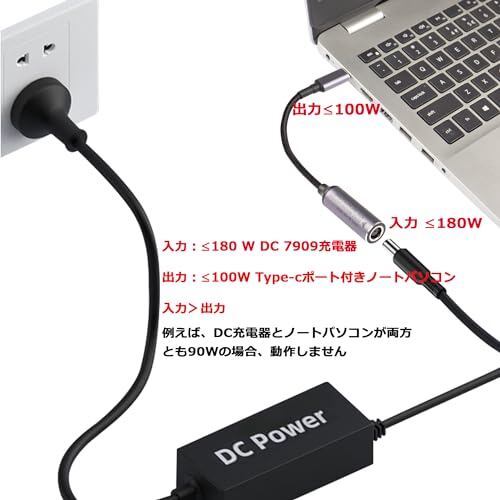 入出力: DC7909メスコネクター、15V-20.5V。出力:タイプCオスコネクター、PD 5V/9V 1.5A、20V 5A。ケーブル長:17.4cm。
