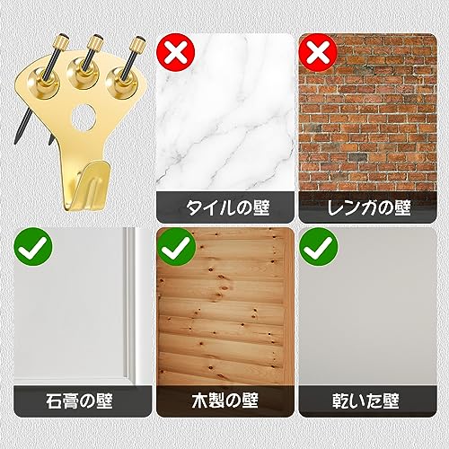 【幅広い用途】ご家庭やオフィスのほとんどのアイテムに幅広くお使いいただけます。写真、額縁、衣類、バッグ、鍵、キッチンツールフック、壁掛け植木鉢など、キラキラしている金色、どこでも輝いていて、お部屋の良い飾りになります。