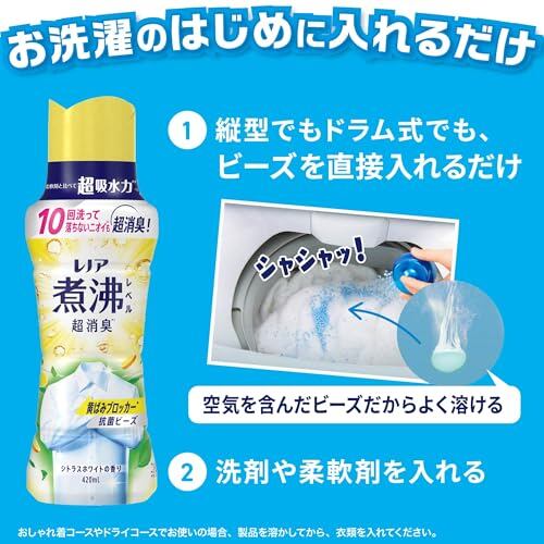 レノア 煮沸レベル消臭 抗菌ビーズ 黄ばみブロッカー シトラスホワイト 詰め替え 1,410mL [大容量] 柔軟剤と一緒に使って効果長続き