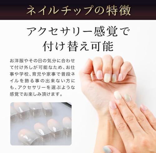 ③付いたら、1本ずつ爪を押さえて密着させます。テープがヨレたり、ネイルチップと自分の爪の間に”空気や水”などが入ると取れやすくなってしまいます。