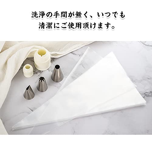 50枚入りビニール製の使い捨て絞り袋です。洗浄の手間が無く、いつでも清潔にご使用頂けます。