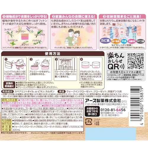 家族みんなの衣類に使える。クローゼットやタンスなど収納空間に置くだけで防虫。
