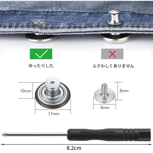 【超便利な調節機能】この製品には10つのボタンと1つのドライバーがあります。直径:17 mm。道具や裁縫を一切必要とせず、わずか3秒で衣類のサイズを簡単に調整でき、ウエストを締めたり緩めたりして、衣類をより快適に肌着にフィットさせることができます。