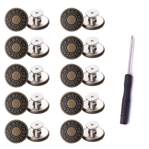 YINKE ジーンズ 調整ボタン 10個セット ジーンズボタン ジーンズにぴったり ピン 金属ジーンズ 簡単取付け DIY 手作り 延長と縮小可能 専用ドライバー付き (銅色)