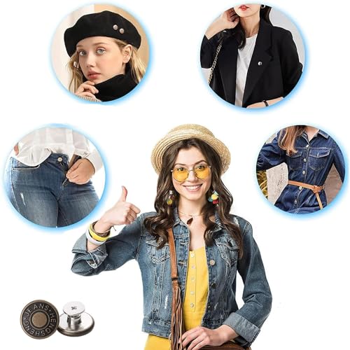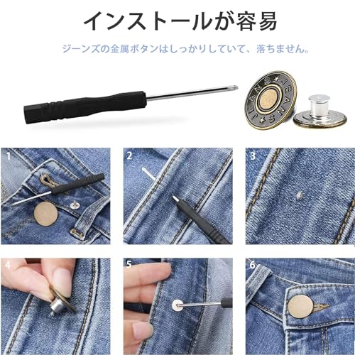 【多種の用途が広く応用されている】ジーンズボタンは1インチ(約2.5 cm)の空間を提供でき、ウエストサイズを縮小または拡大することができる。ジーンズ、ショートパンツ、ジャケット、帽子、リュックサックなど、さまざまな衣類やアクセサリーに適しており、ボタン1セットで複数のコーディネートの柔軟性を高めることができます。