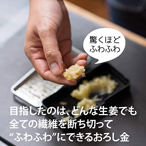 【信頼のある日本製】金型もおろし金の刃も、受皿も、組み立てにいたっても全部が国産の"純"日本製です。純国産だからできる0.01mm単位の調整でこだわったおろし金の刃は、今まで体験したことのない味わいを感じさせてくれます刃に食材が挟まりにくくて洗いやすいのが特徴でお手入れも簡単です。食器洗い乾燥機では使えません。
