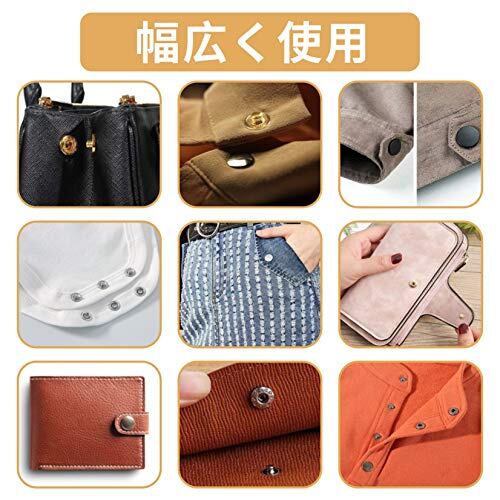 【DIY・手芸・ハンドメイドに適用】かばんやアクセサリー、財布、キーケース、サンダル等様々なホックの取付作業に必須の定番セットになります。大活躍な手芸材料セット、素敵なハンドメイド作品の仕上げに大いに役立ち間違いありません。DIY好きな方にお勧めです。