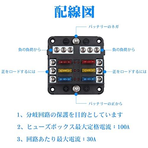 ADPOW 6ウェイ 回路カーボート ヒューズボックス ホルダー 防水 LED警告ライト キット付き ATO ATC ブロックヒューズ ブレードヒューズ 5A 10A 15A 20A 自動車 ボートマリン トライクに適用 DC 12V-32V