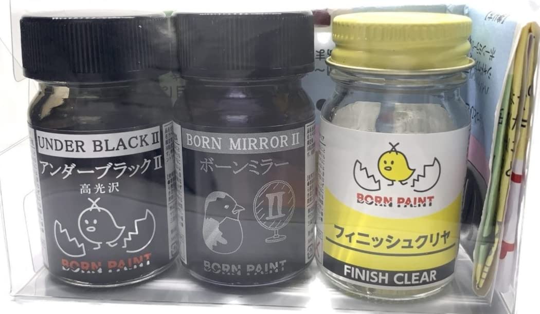 トアミル BORN PAINT メッキ調お試しセット(ボーンミラーII・アンダーブラックII・フィニッシュクリヤ) 各15ml 模型用塗料 BP