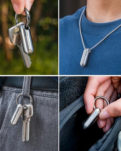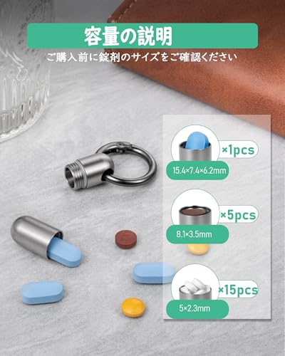 TIMULTI チタン(Ti) 薬ケース 防水 ピルケース 携帯型 カプセル サプリ 収納 小物入れ コンパクト ニトロ ケース アウトドア キーホルダー ペンダント メモリアル ケース (カプセル) (1個入り)