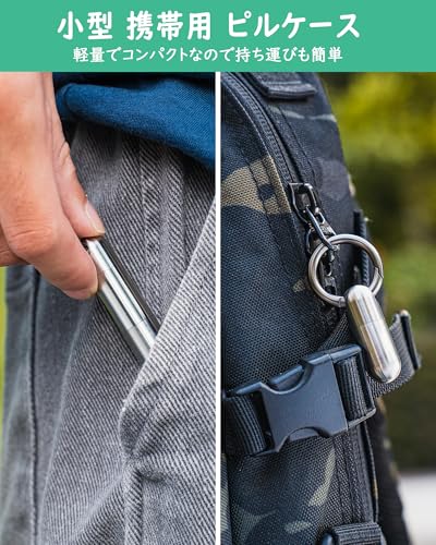 キーホルダー ピルケース : 小型 ピルケースは軽量でコンパクトなので、財布やポケットに簡単に収納でき、便利です。この錠剤 ケースは、常に薬を携帯したい人や、薬の服用を忘れがちな人にとって非常に実用的です。鍵やバッグに掛けておけば、薬を飲み忘れる心配がありません。