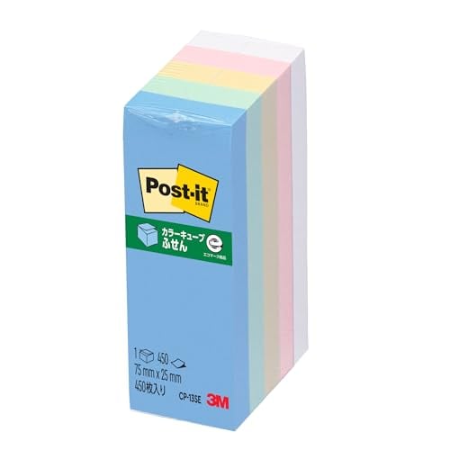 ポストイット 付箋 超徳用 ふせん キューブ パステルカラー 75×25mm 450枚×1パッド CP-13SE