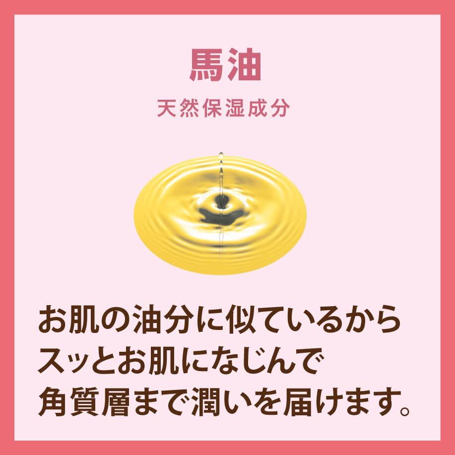 肌なじみの良い天然油、馬油配合でしっとりうるおう素肌に。