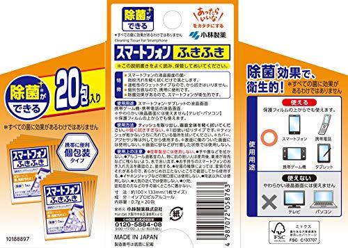メガネクリーナ スマートフォンふきふき 画面に付いた菌、指紋汚れに アルコール除菌シート (個包装タイプ) スマホ・タブレットに 20包 小林製薬