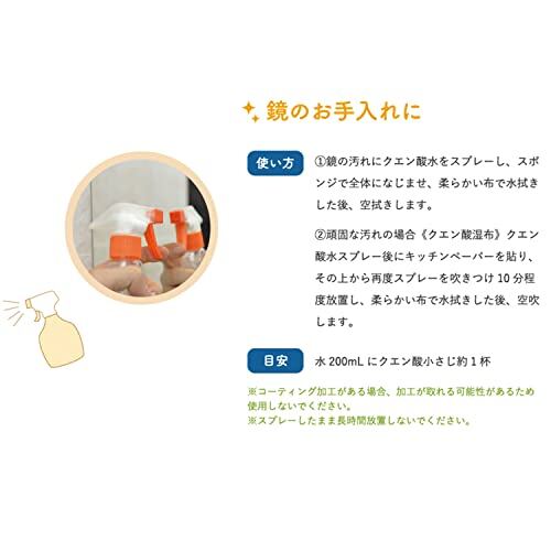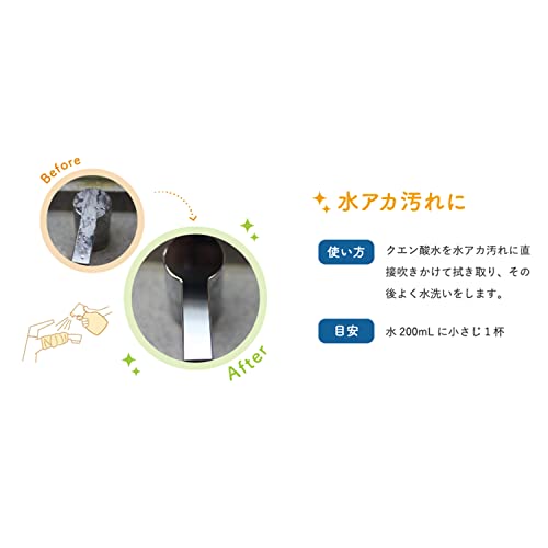 水回りのお掃除、電気ポットや電気ケトルの水アカ取り、便器の黄ばみ汚れのお掃除などいろんな場面で使えて、環境にも優しいクエン酸。