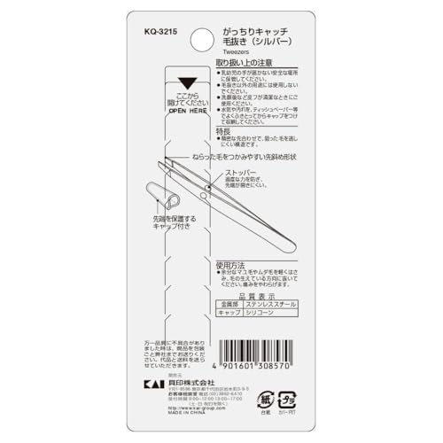 貝印 KAI がっちりキャッチ 毛抜き 先斜 ピンセット用 キャップ付き マユ KQ3215
