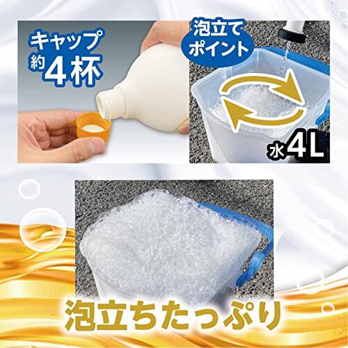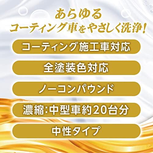 泡切れもよく、キレート剤配合により洗車時のシミを防いでスッキリ仕上がります。手やボディーにもやさしい.安心のノーコンパウンド・中性タイプ。
