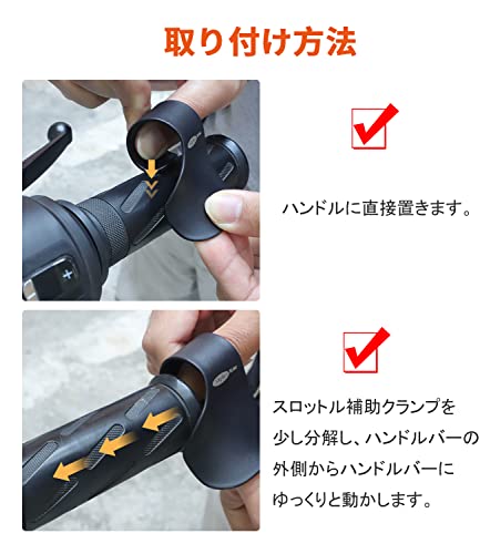 【機能】手のひらでスロットルを固定できるので、腕の疲労やけいれんを軽減し、スロットル操作を容易にします。長時間、長距離の運転にも楽になります。
