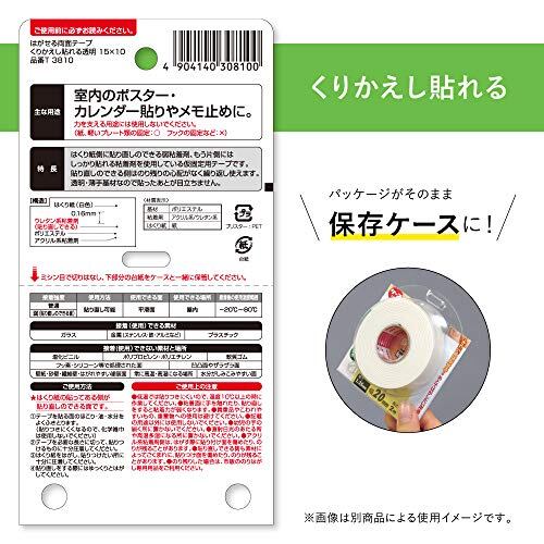 ニトムズ はがせる両面テープ くりかえし貼れる透明 目立たない 簡単 のり残りしない 室内 幅15mm×長さ10m×厚さ0.16mm 1巻入 T3810