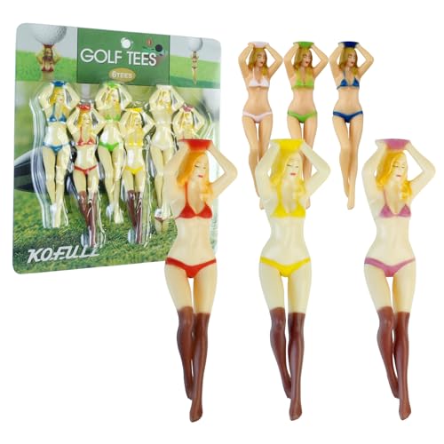 Crestgolfゴルフ ティー、ストッキングガールズ、ビギ二レディース、ゴルフティー、おもしろグッズ、プラスチック、3インチショートティー、ゴルフ プレゼント 男、ゴルフ小物、ゴルフコンペ 景品、パリティー、6本入り、マルチカラー