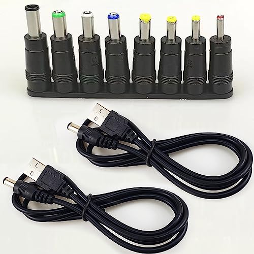 TJK USBケーブル セット 8 in (1*2) DC電源ケーブル USB-丸口 変換プラグ付き DC充電コード 5.5x2.5/5.5x2.1mm 扇風機 ナイトライト 目覚まし時計 などに適用 3.5*1.35mm 4.0*1.7mm 4.8*1.7mm 5.5*1.7mm 5.5*2.1mm 5.5*2.5mm 6.3*3.0mm 6.4*4.4mm コネクタアダプタ (ケーブル2本+8変換プラグ)