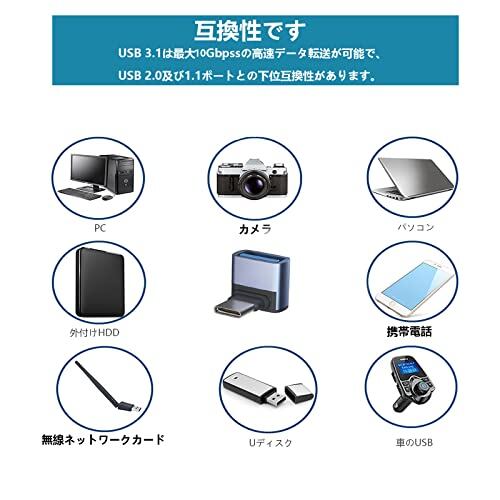 【10Gbpsデータ転送】USB CアダプターはUSB 3.1規格に準拠しており、データ転送速度は最大10Gbpsです。 映画や音楽などをわずか数秒で転送できます。