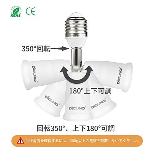 DiCUNO E26→E26 口金延長アダプター E26 延長ソケット 角度可調 約9.5CM延長する 難燃性材料PBT 4個セット